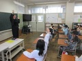 エリン先生の自己紹介を聞いた後、体の部位の英語を教えてもらいました。聞きなれない言葉もあったようですが、楽しく英語に親しむことができました。