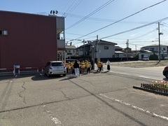 今朝はいつもの校門ではなく、少し離れた校地外で子どもたちの朝の当校の様子を見守りました。